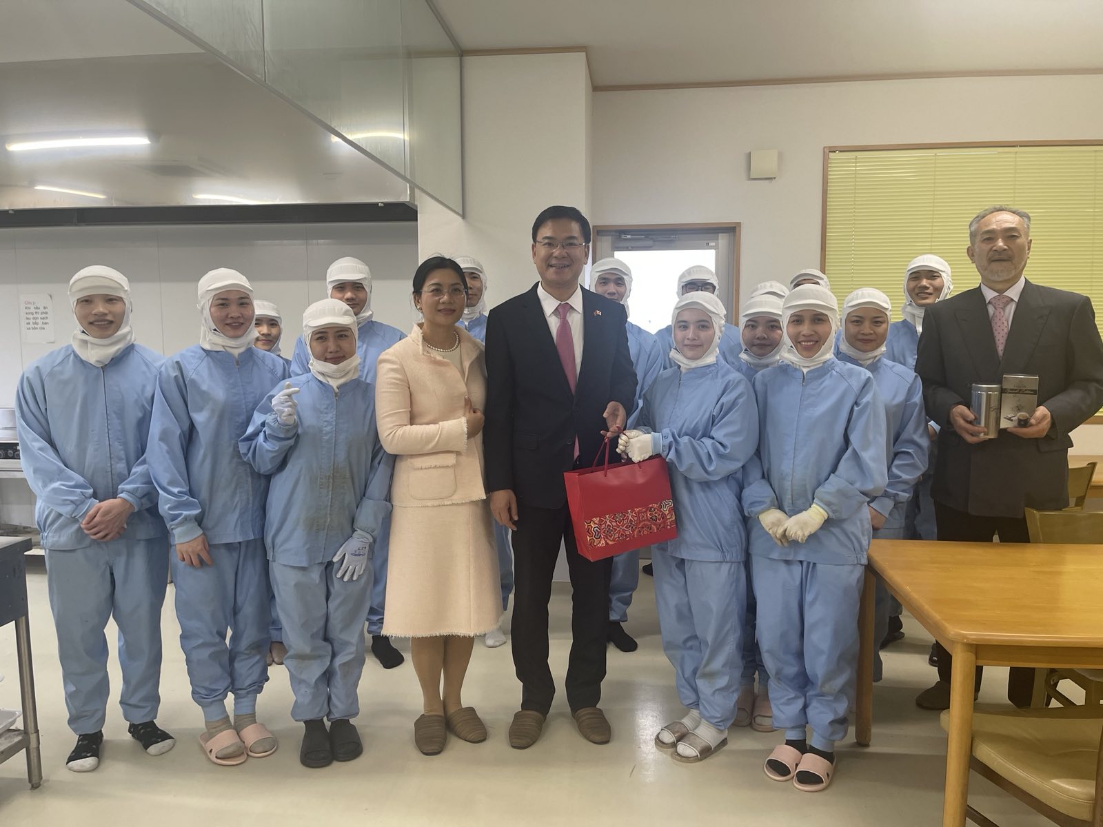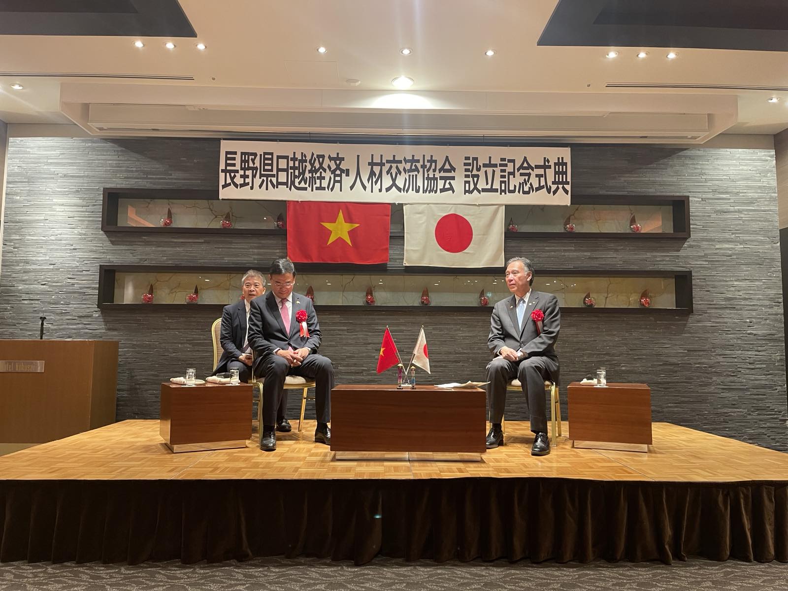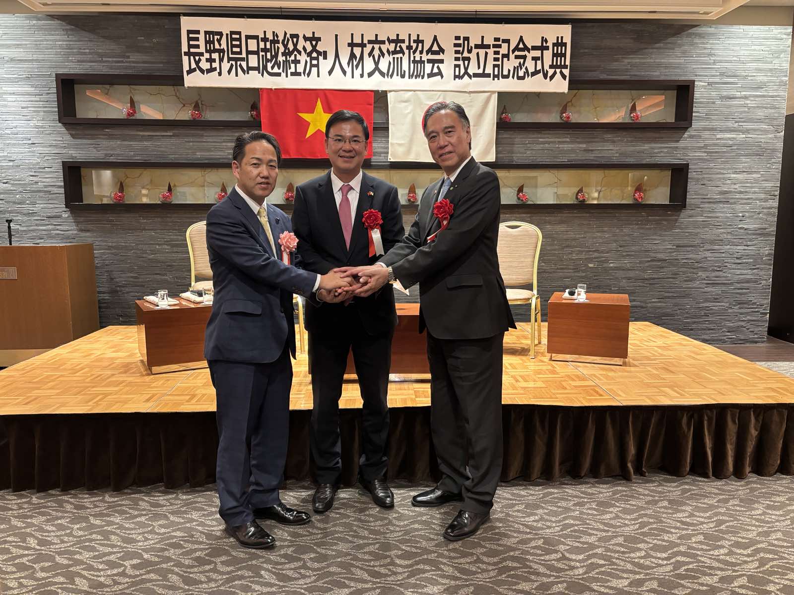 From April 10th to 11th, 2026, the Ambassador Extraordinary and Plenipotentiary of Vietnam to Japan, Pham Quang Hieu, and a delegation from the Embassy visited Nagano Prefecture to promote economic and human resource cooperation and exchange between Vietnam and Nagano Prefecture. In Nagano, Ambassador Pham Quang Hieu, along with Governor Abe Shuichi, attended the founding ceremony of the Japan-Vietnam Economic and Human Resource Exchange Association of Nagano Prefecture, held a dialogue to discuss solutions to promote cooperation between Vietnam and Nagano Prefecture, and visited and encouraged Vietnamese workers at Marukin Company. Speaking at the founding ceremony of the Japan-Vietnam Economic and Human Resource Exchange Association of Nagano Prefecture, Ambassador Pham Quang Hieu highly appreciated and sincerely thanked the Nagano Prefecture government and its businesses for their cooperation and support in establishing the Association. The Ambassador expressed his belief that the establishment of the Association would open a new phase of development in relations between Nagano Prefecture and Vietnam. Ambassador Pham Quang Hieu highly appreciated the Association's guiding principle of accepting foreign workers, welcoming those who abide by Japanese law as "good neighbors," working together, living together, and enjoying an orderly and civilized environment. The Ambassador believed that with the support of the Nagano Prefecture government and relevant agencies, the symbiotic society of Nagano Prefecture would soon be successfully built and become a model for other localities in Japan to follow. Accordingly, Vietnamese people in Nagano Prefecture in particular, and Japan in general, will have great opportunities to develop themselves, their families, and their careers, contributing to the socio-economic development of the prefecture and Japan. During a dialogue with Governor Abe Shuichi on opportunities and potential for cooperation between Vietnam and Nagano Prefecture, Ambassador Pham Quang Hieu stated that Nagano was one of the first Japanese localities he visited after assuming office. The Ambassador expressed pleasure at the continuous development of multifaceted cooperation between Nagano Prefecture and Vietnam, noting that the Vietnamese community in the prefecture is the largest and is gradually establishing its position within the prefecture. Governor Abe Shuichi noted that Nagano Prefecture is facing the challenging issue of socio-economic development amidst a labor shortage. To address this, the prefecture prioritizes attracting and retaining workers, including foreign workers, to develop the local socio-economic landscape. Socio-economic development will support and create favorable conditions for workers to develop themselves and their careers locally. In discussing this policy, Ambassador Pham Quang Hieu highly appreciated the prefecture's approach and strategies in overcoming the labor shortage and attracting foreign workers. The Ambassador stated that the vast majority of Vietnamese workers in Japan in general, and in Nagano Prefecture in particular, are diligent, abide by the law and local customs, and aspire to develop themselves and their careers locally. Vietnamese people living in Nagano, or any other locality in Japan, who are treated equally, respected, and tolerant, will consider that place "My Home." They will live, work, and contribute to the development and prosperity of "My Home." Later that same day, Ambassador Pham Quang Hieu and the Embassy delegation visited and worked with Marukin Company, inquiring about and encouraging the Vietnamese workers employed there. The Ambassador kindly encouraged the Vietnamese workers to strive to learn Japanese, improve their skills, and comply with company regulations and local customs. At the same time, the Ambassador requested that the company and the labor union pay attention to and support workers in improving their Japanese language skills, interacting with and experiencing local culture, and participating in local cultural activities.