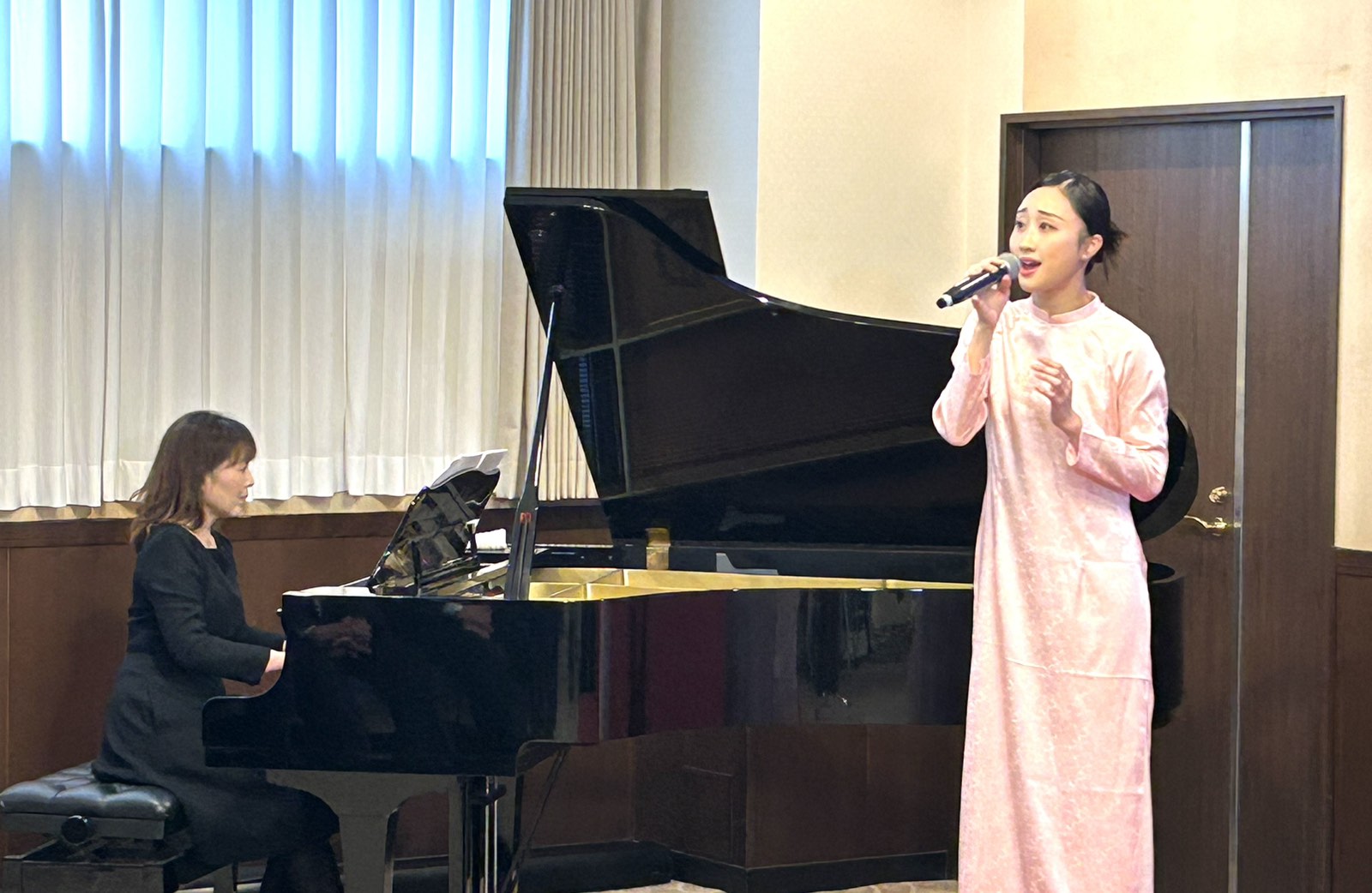 Singer Kurisu Oto performs a song from the musical with piano accompaniment by artist Motohashi Tomoki.
