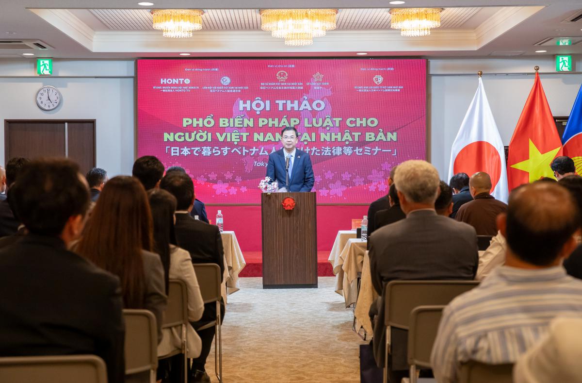 Chiều ngày 19/4/2026, tại Tokyo, Đại sứ quán Việt Nam tại Nhật Bản phối hợp với Cơ quan cảnh sát Tokyo tổ chức Hội thảo phổ biến pháp luật cho người Việt Nam tại Nhật Bản. Đây là hoạt động có ý nghĩa thiết thực trong việc nâng cao hiểu biết pháp luật, góp phần giúp cộng đồng Việt Nam hội nhập tốt hơn vào xã hội Nhật Bản. Hội thảo thu hút khoảng 150 người tham dự, đại diện cho các doanh nghiệp Nhật Bản tiếp nhận lao động Việt Nam, các hội đoàn người Việt Nam tại Nhật Bản, lao động Việt Nam, các cơ quan liên quan của Nhật Bản và báo chí sở tại đến đưa tin. Hội thảo tập trung vào 3 chủ đề lớn, bao gồm pháp luật Nhật Bản, giao thông và phòng chống thiên tai. Đây là những vấn đề liên quan trực tiếp đến sinh hoạt hàng ngày của mỗi người Việt Nam đang sinh sống tại Nhật Bản, góp phần bảo vệ an toàn cho mọi cá nhân. Đặc biệt, đại diện Cơ quan quản lý xuất nhập cảnh và cư trú Nhật Bản còn giải thích rõ những quy định cơ bản của các luật liên quan đến xuất nhập cảnh và cư trú tại Nhật Bản, truyền đạt những kinh nghiệm giúp người Việt Nam tránh được các bẫy lừa đảo liên quan đến “việc nhẹ lương cao”, hoặc “chỉ cần trả tiền là có thể đến Nhật Bản làm việc”. Những thông tin được đưa ra tại hội thảo góp phần giúp Cộng đồng Việt Nam hiểu rõ hơn quyền lợi và nghĩa vụ của mình, đồng thời tránh được những vi phạm do thiếu hiểu biết. Hội thảo này là một hoạt động trong khuôn khổ những nỗ lực của Đại sứ quán Việt Nam tại Nhật Bản hướng tới một Cộng đồng Việt Nam thân thiện, hòa đồng với cư dân sở tại, góp phần bảo vệ an toàn cho người Việt Nam tại Nhật Bản, cũng như làm đẹp thêm hình ảnh Việt Nam trong con mắt bạn bè Nhật Bản và quốc tế. Phát biểu bế mạc Hội thảo, Đại sứ đặc mệnh toàn quyền Việt Nam tại Nhật Bản Phạm Quang Hiệu kêu gọi Cộng đồng Việt Nam cùng nhau cam kết: “Người Việt Nam tại Nhật Bản – sống và tuân thủ theo pháp luật Nhật Bản!”.