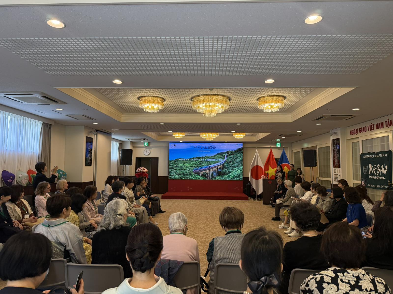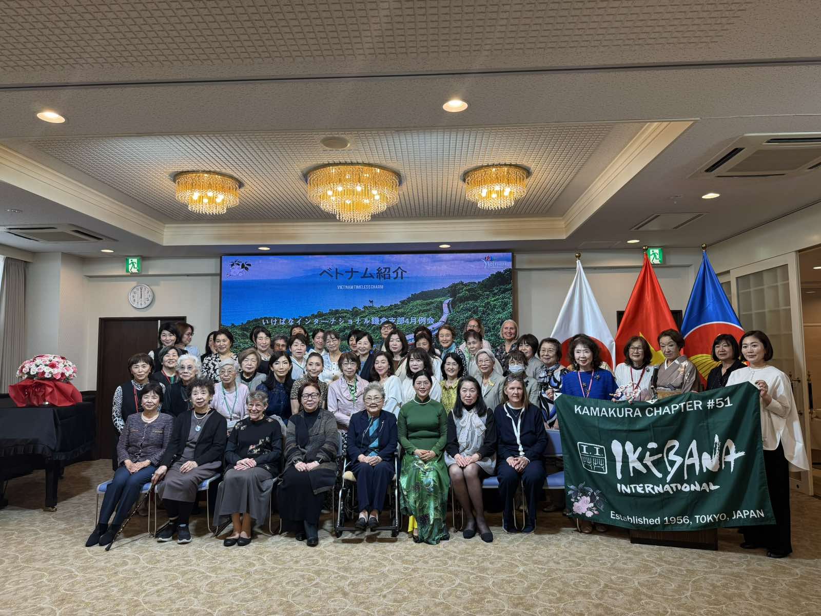 Ngày 16/4/2026, tại trụ sở Đại sứ quán Việt Nam tại Nhật Bản, Đại sứ quán đã phối hợp với Hội Ikebana chi nhánh Kamakura tổ chức chương trình giao lưu văn hóa Việt Nam – Nhật Bản với sự tham dự của gần 60 khách mời Nhật Bản yêu mến đất nước và con người Việt Nam. Chương trình diễn ra trong không khí thân tình, ấm áp và đậm đà bản sắc văn hóa hai nước. Đây là hoạt động có ý nghĩa thiết thực nhằm tiếp tục quảng bá hình ảnh Việt Nam, giới thiệu những nét đặc sắc về văn hóa, du lịch và ẩm thực Việt Nam tới bạn bè Nhật Bản, đồng thời tăng cường giao lưu nhân dân và hiểu biết lẫn nhau giữa hai dân tộc. Tại sự kiện, các khách mời đã được nghe giới thiệu về đất nước, con người, văn hóa và tiềm năng du lịch của Việt Nam. Điểm nhấn đặc biệt của chương trình là phần chia sẻ của Phu nhân Đại sứ về truyền thống yêu hoa của người Việt – một nét đẹp văn hóa gắn liền với đời sống tinh thần, nghệ thuật và tâm hồn dân tộc. Qua phần trình diễn múa sen duyên dáng và giàu biểu cảm, hình ảnh hoa sen – biểu tượng của sự thanh cao và tinh khiết – đã được tôn vinh như quốc hoa của Việt Nam. Bên cạnh đó, vẻ đẹp đa dạng của các loài hoa Hà Nội cũng được giới thiệu sinh động thông qua phần minh họa theo bài hát Hà Nội 12 mùa hoa. Từng mùa hoa đặc trưng như hoa ban, hoa sưa, hoa sen, hoa sấu, hoa ngâu, hoa thạch thảo… lần lượt hiện lên qua hình ảnh và âm nhạc, giúp khách mời cảm nhận sâu sắc hơn nét tinh tế và lãng mạn của Thủ đô Hà Nội. Xen kẽ chương trình là các tiết mục biểu diễn nghệ thuật đặc sắc do Hiệp hội Văn hóa Nghệ thuật truyền thống thực hiện, mang đến không khí sôi động và giàu cảm xúc. Sau phần giao lưu, khách mời cùng thưởng thức tiệc trưa với các món ăn tiêu biểu của Việt Nam, góp phần lan tỏa hương vị ẩm thực Việt tới bạn bè quốc tế. Thông qua chương trình, Đại sứ quán Việt Nam tại Nhật Bản tiếp tục khẳng định vai trò cầu nối trong thúc đẩy ngoại giao văn hóa, mở rộng mạng lưới đối tác địa phương, đồng thời vun đắp tình hữu nghị và sự gắn kết bền chặt giữa nhân dân Việt Nam và Nhật Bản./.
