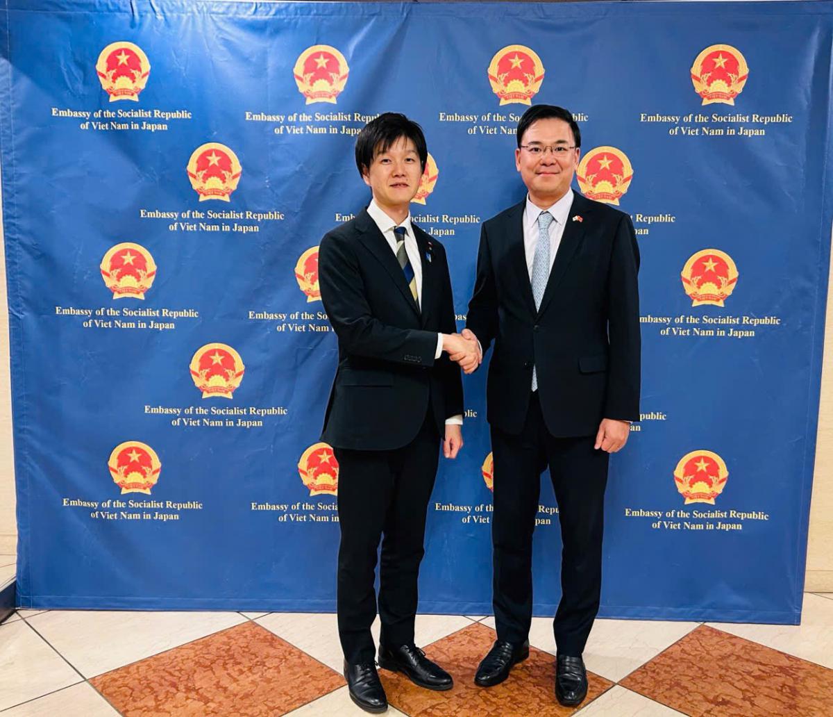 ファム・クアン・ヒエウ大使は、鈴木憲和農林水産大臣と会談しました。ファム・クアン・ヒュー大使は、鈴木大臣の日本農林水産大臣就任に改めて温かく祝意を表し、両国が特に農林水産業分野における協力を強化し、特にこの新たな発展段階において両国の発展に貢献していくことを期待する旨を表明しました。この機会に、ファム・クアン・ヒュー大使は、今後の二国間協力の促進のため、鈴木大臣に対しベトナムへの早期訪問を丁重に招待しました。鈴木大臣は喜んでこの招待を受け入れました。